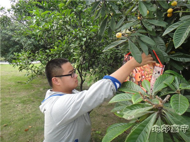 榉柳枝枝弱,枇杷树树香。北郊校园的夏天少不了片片绿意遮阴避暑;少不了花香阵阵沁人心脾;少不了累累果实压弯枝头。在这阳光灿烂的五月,在这绿意盎然的校园,每一位北郊高一同学都在内心深处默默地为高三的学长学姐祝福。为了表达同学们内心深处款款的深情和真切的祝福,高一各团支部精心制作了充满美好祝福的枇杷树认养牌,并于5月21日下午统一挂在了结满硕果的枇杷树枝头。这个活动也拉开了“心手相连,祝福高三”主题系列活动的序幕。