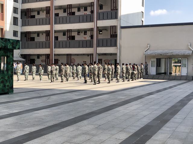 今天是同学们在军营里生活在第四天,在一如既往在晨跑、早饭之后,我们连被带到天井中练习正步。