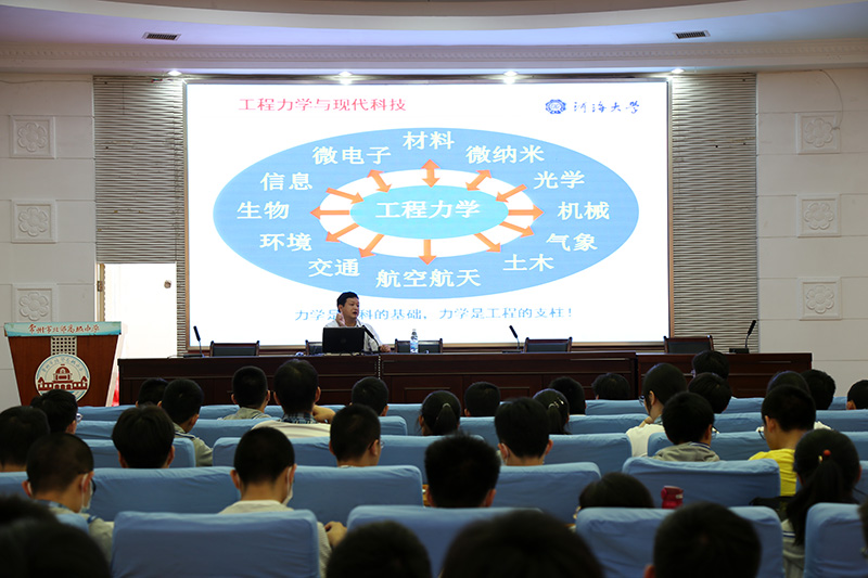 专题讲座环节,河海大学工程力学系雷冬教授在圆形报告厅为高一学子们带来了一场精彩纷呈的讲座。雷冬教授从大家了解的生活经验引入力学,牢牢地吸引住了同学们的注意力。用生动的事例让同学们发现生活中处处有力学,处处离不开力学。这些事例激发了同学们对力学的好奇心,同时也为有专业发展意向的同学提供了专业的引导和建议。河海大学工程力学专业的教学,在全国处于领先地位,就业前景广阔。