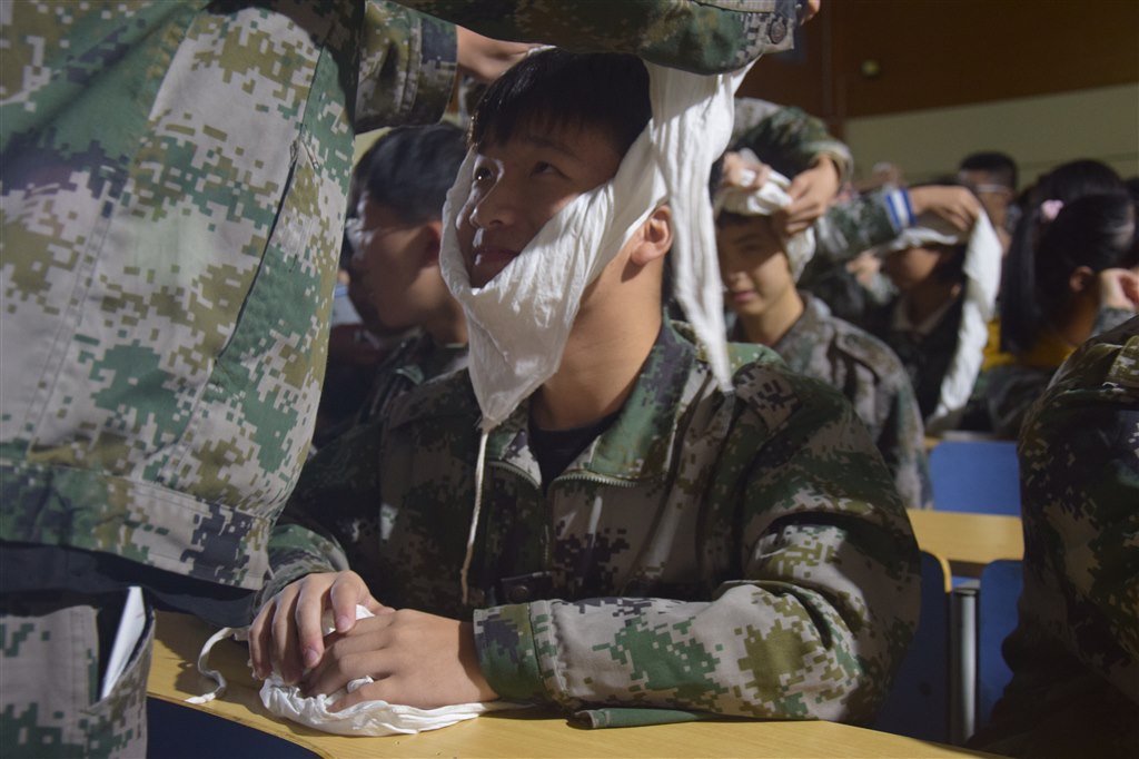 16号下午,我们班进行了战伤救护培训。包括包扎,心肺复苏等等。教官向同学们示范了各种包扎。通过培训,大家对基本的救护措施都有了了解和实践,度过了非常有意义的一个下午。