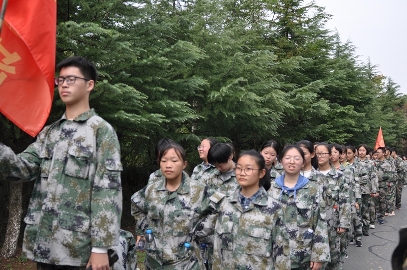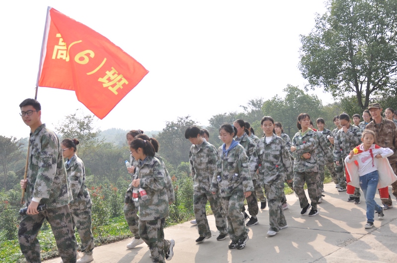 军歌声,脚步声,交织在拉练途中。上坡下坡,左转右转,六班同学不怕苦不怕累,拉练途中没有一位同学抱怨,每位同学都在努力坚持。在他们身上,团结与坚强体现的淋漓尽致。