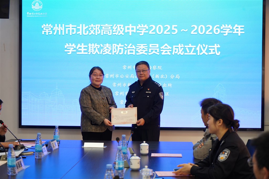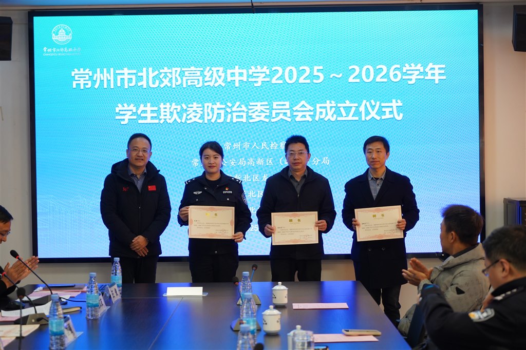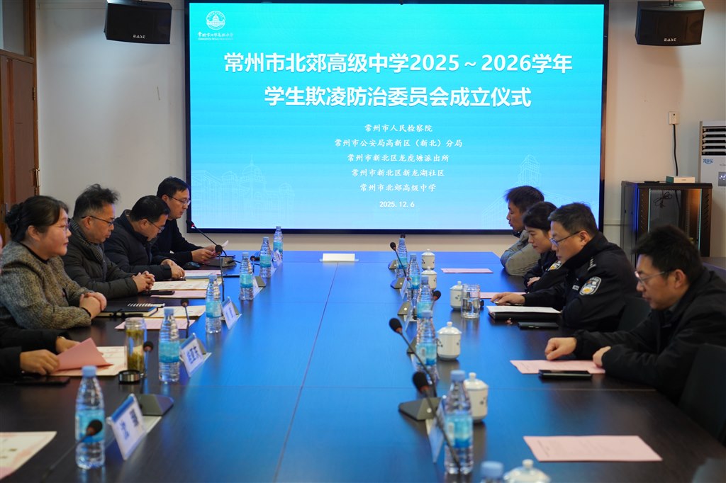为深入贯彻落实教育部关于学生欺凌防治工作的要求,切实保障学生合法权益,营造平安、文明、和谐的校园环境,12月6日上午,北郊高中举行了2025-2026学年学生欺凌防治委员会成立仪式。北郊高中校长室成员、相关部门负责人、教师代表、家长代表及学生代表共同参会。会议由学生发展处主任王俊主持。