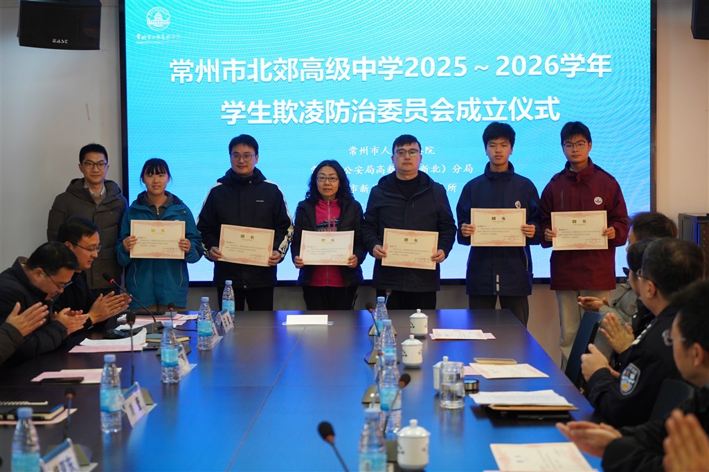 仪式上,副校长姚文友详细解读了《常州市北郊高级中学2025-2026学年学生欺凌防治工作方案》。方案明确工作目标为:通过开展专项治理、加强宣传教育、健全长效机制,从源头上预防和减少学生欺凌行为;在组织架构上明确各成员职责,形成“学校主导、部门协同、家校联动、社会参与”的工作格局。