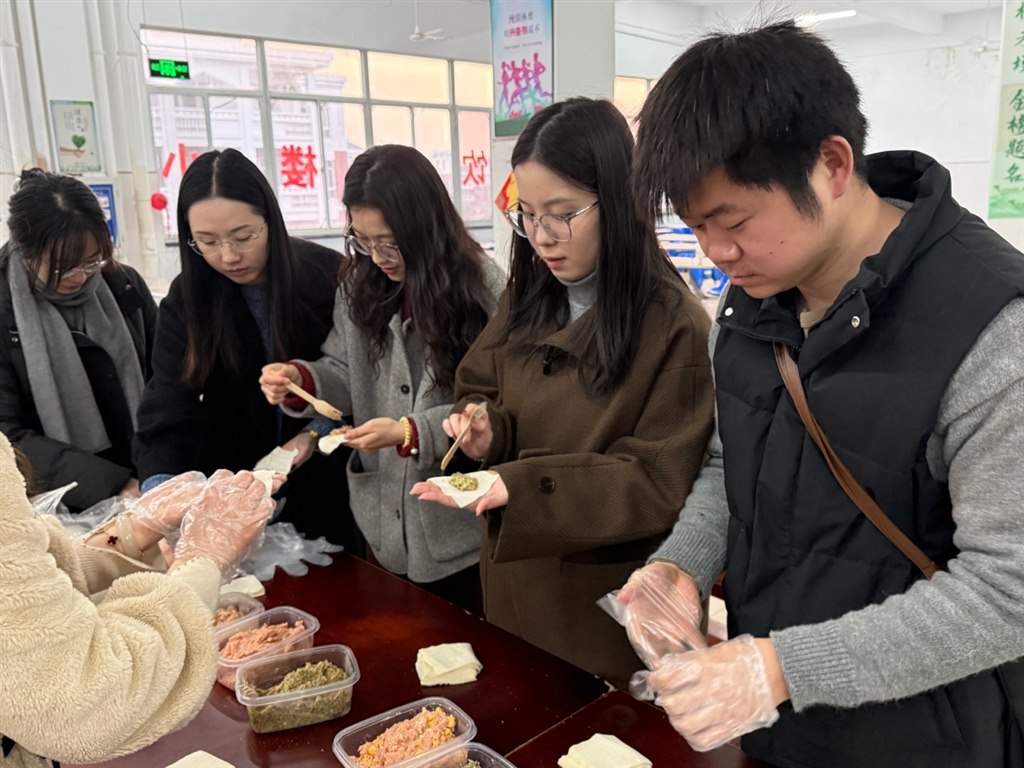 随后,温馨的联谊环节拉开帷幕。大家前往食堂开展包馄饨联谊活动,放馅、捏合,欢声笑语不断。一张张薄薄的馄饨皮,包裹着鲜香的馅料,也承载着老师们之间的情谊与对学校的热爱。在轻松愉快的氛围中,跨学科、跨年级的老师们增进了了解、加深了情谊,进一步凝聚了学校的向心力与凝聚力。